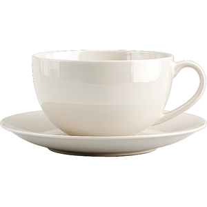 A saucer is a small, round plate placed under a cup. It catches drops of tea or coffee and helps hold the cup neatly on a table.