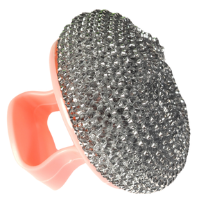 A scrubber is a rough cleaning tool used to remove tough stains or stuck food from pots, pans, and kitchen utensils.