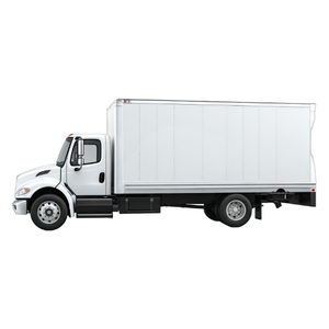 A box truck has a large enclosed cargo area shaped like a box. It is used to transport furniture, goods, and packages.