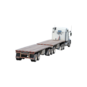 A flatbed truck has a long flat platform without sides. It is used to carry large or heavy loads that cannot fit inside normal trucks.