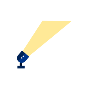 Spotlight is a strong, focused light that shines on a specific area or object, highlighting it clearly in dark or large spaces.