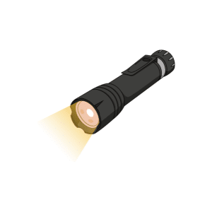 Flashlight is a small portable electric light powered by batteries, used to see in dark places or during emergencies.