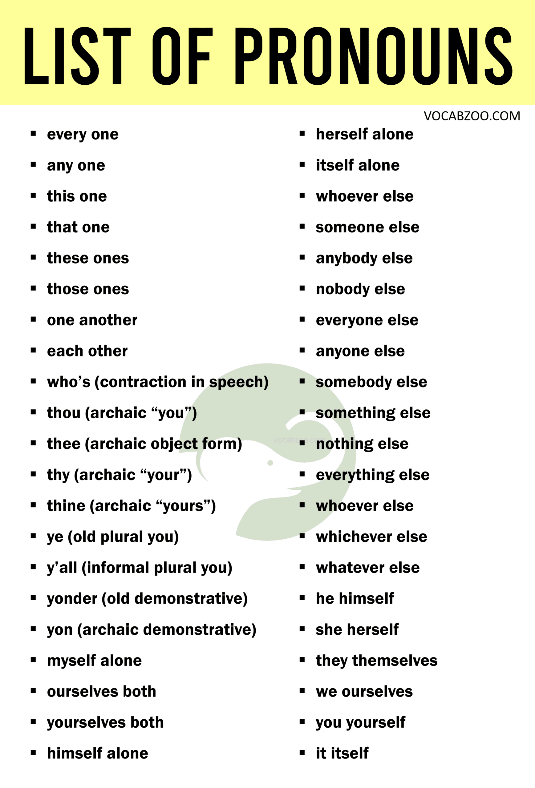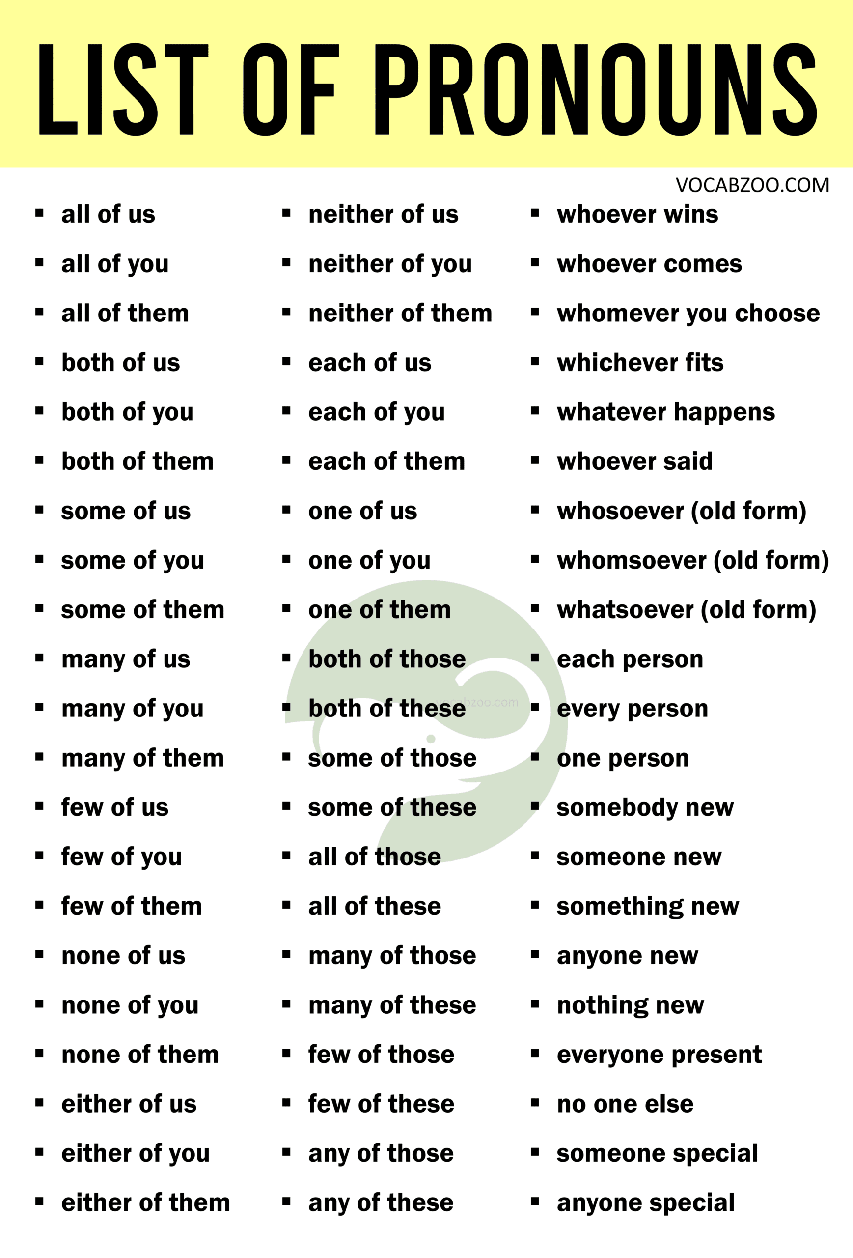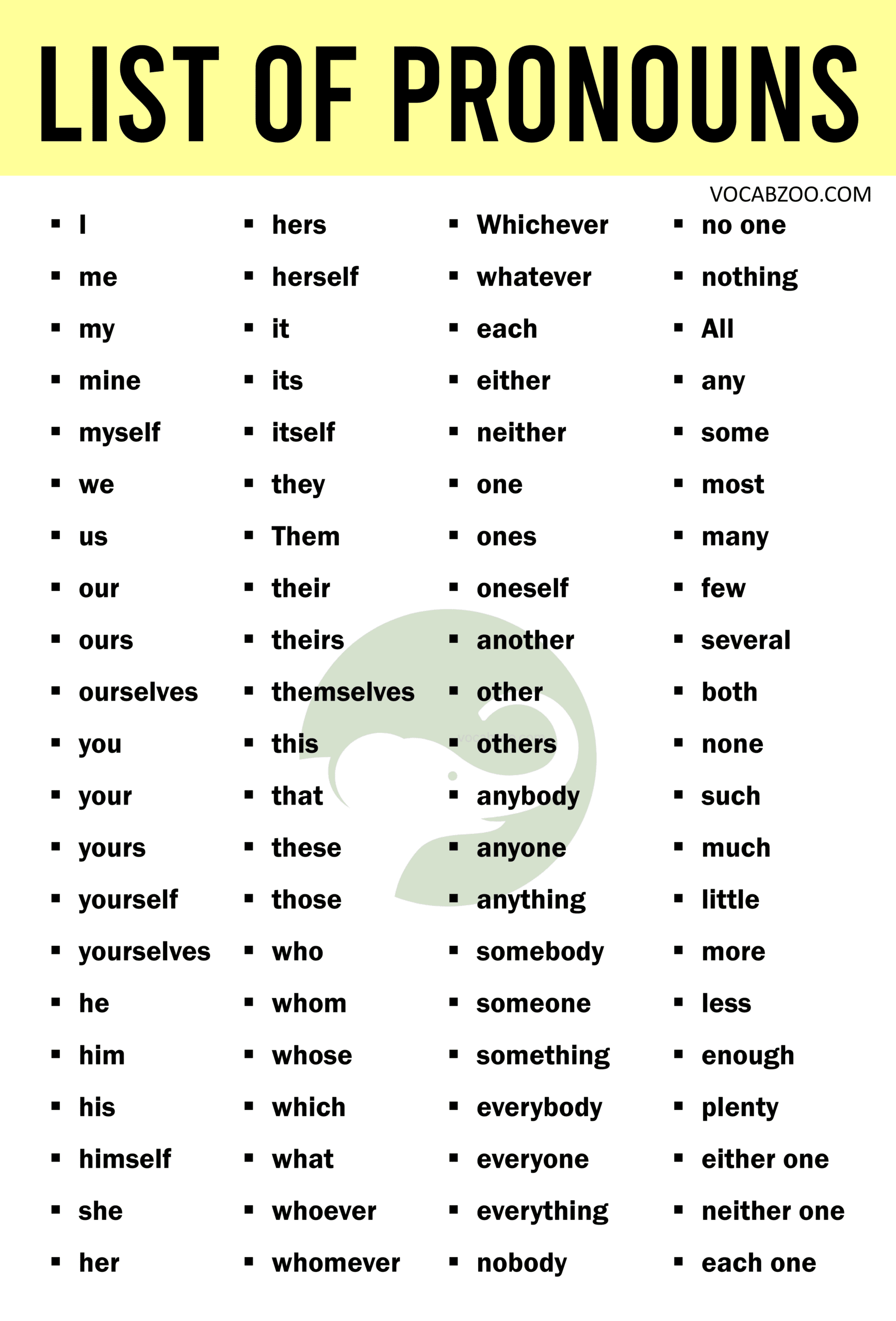 List of Pronouns | A to Z List of Pronoun Examples in English