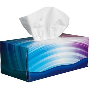 A tissue box is a container that holds soft paper tissues used for cleaning the nose or face.