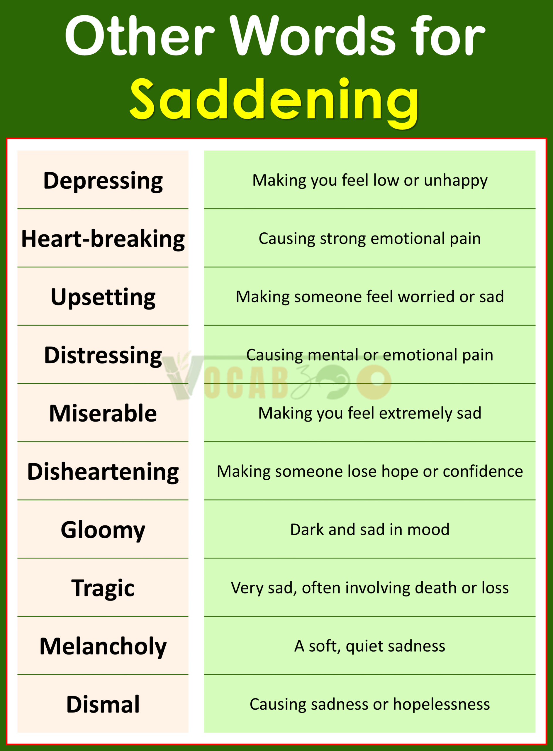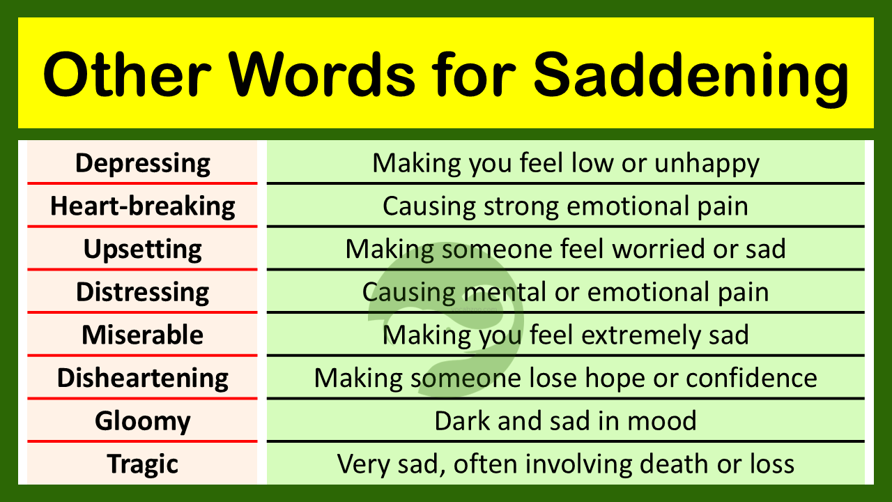 So, if something makes you feel downhearted or unhappy, you can use different words instead of “saddening”.