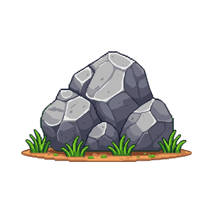 A rock is a large, hard natural object found on the ground, often used in parks for decoration or as part of the natural landscape.