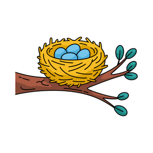 A nest is a home built by birds using twigs, leaves, and grass, where they lay eggs and take care of their young safely.