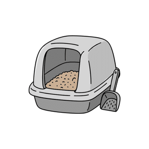 Litter box is a container filled with absorbent material where cats can urinate or defecate indoors in a clean way.