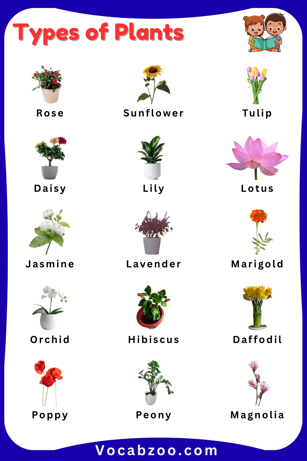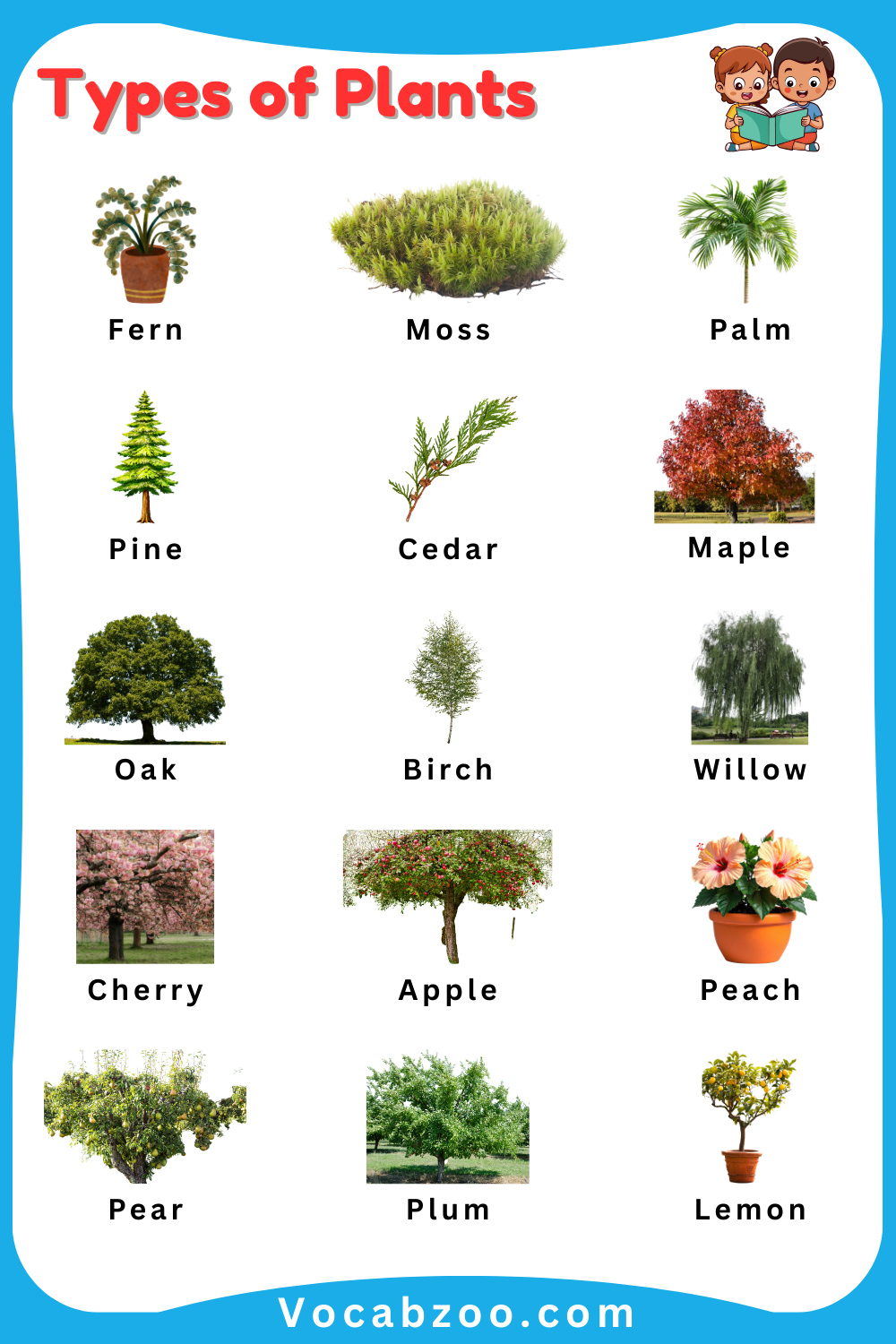 Plants are an important part of nature and play a big role in keeping our environment healthy and beautiful. They grow in many forms such as trees, flowers, herbs, and small green plants that we see in gardens, parks, and forests. Learning plant names helps kids understand the natural world while also improving their basic English vocabulary. In this article, children will learn different Plants Names for Kids in English along with clear pictures that make it easier to recognize and remember each plant. This simple guide is designed to help young learners explore nature while learning new English words in a fun and easy way.
