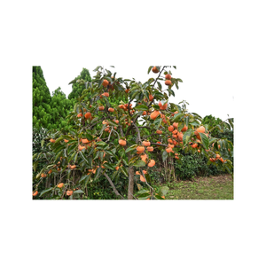 Persimmon is an orange fruit that grows on trees. When ripe, its flesh becomes very sweet and soft.