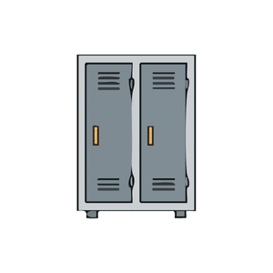 A locker is a small storage space with a lock used by students to safely keep books, bags, and personal items at school.