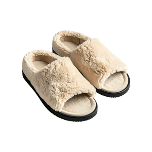 Insulated slippers designed to keep feet warm indoors during winter, soft and cozy for comfort after coming in from snow.