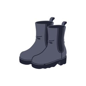 Waterproof boots worn to keep feet dry during rainy weather, usually made of rubber and easy to clean.