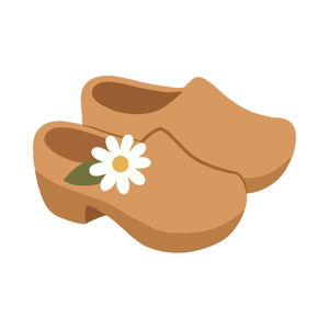 Slip-on shoes with a firm sole, often made of wood or rubber, easy to wear and comfortable for casual use.