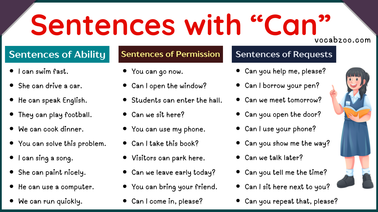 The word can is one of the most common and useful words in English grammar. It is a modal verb that helps us show ability, possibility, permission, and sometimes requests. For English learners, understanding how to use can in sentences is very important. In this article, we will share with you 100 simple sentences with can in English. By the end of this lesson, you will know how to use can in any situation.