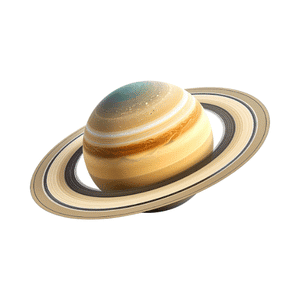 Saturn is a large gas planet known for its beautiful rings made of ice and rock particles orbiting around it in space.