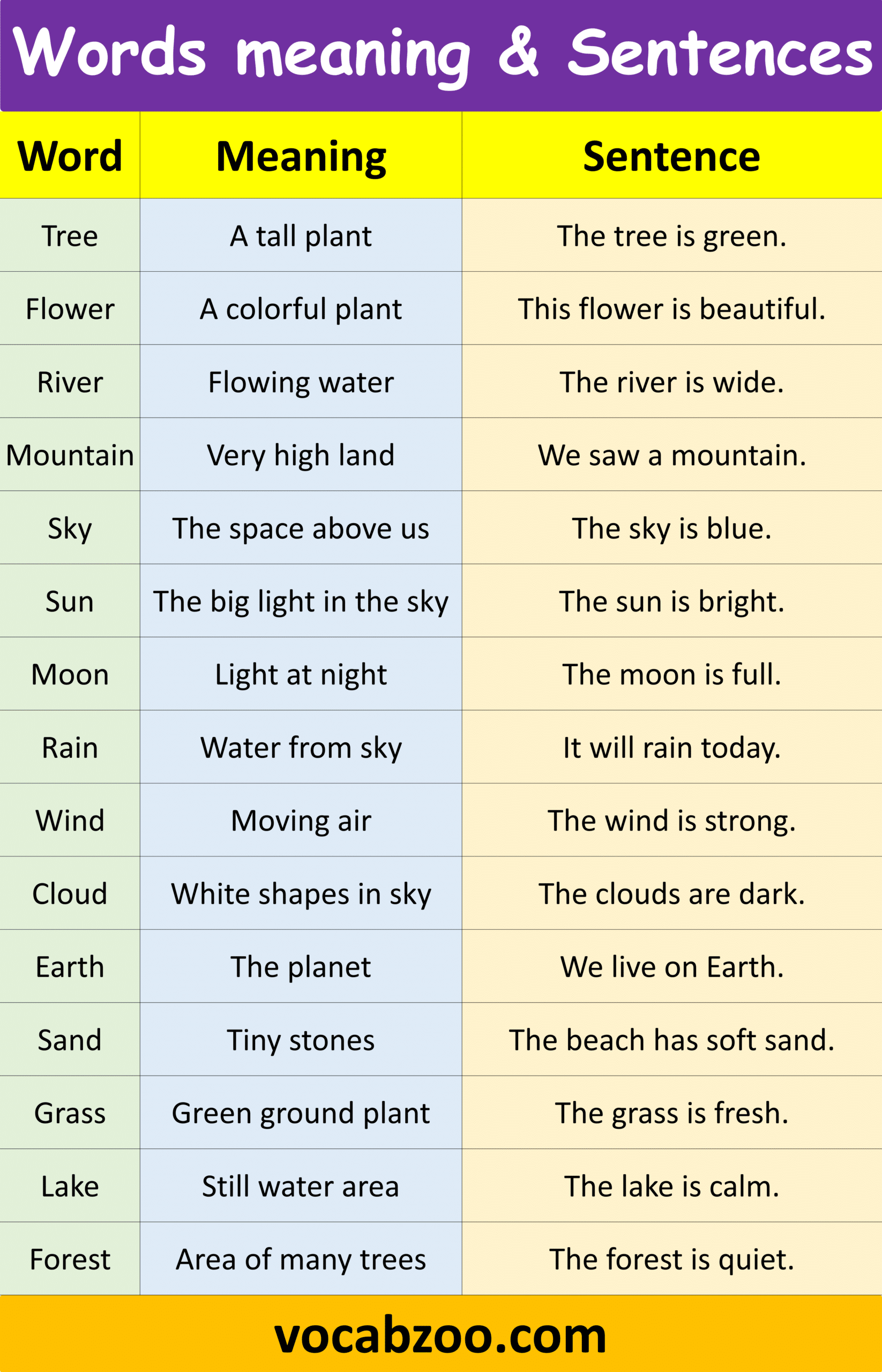 Nature and Environment Vocabulary Words with Meaning