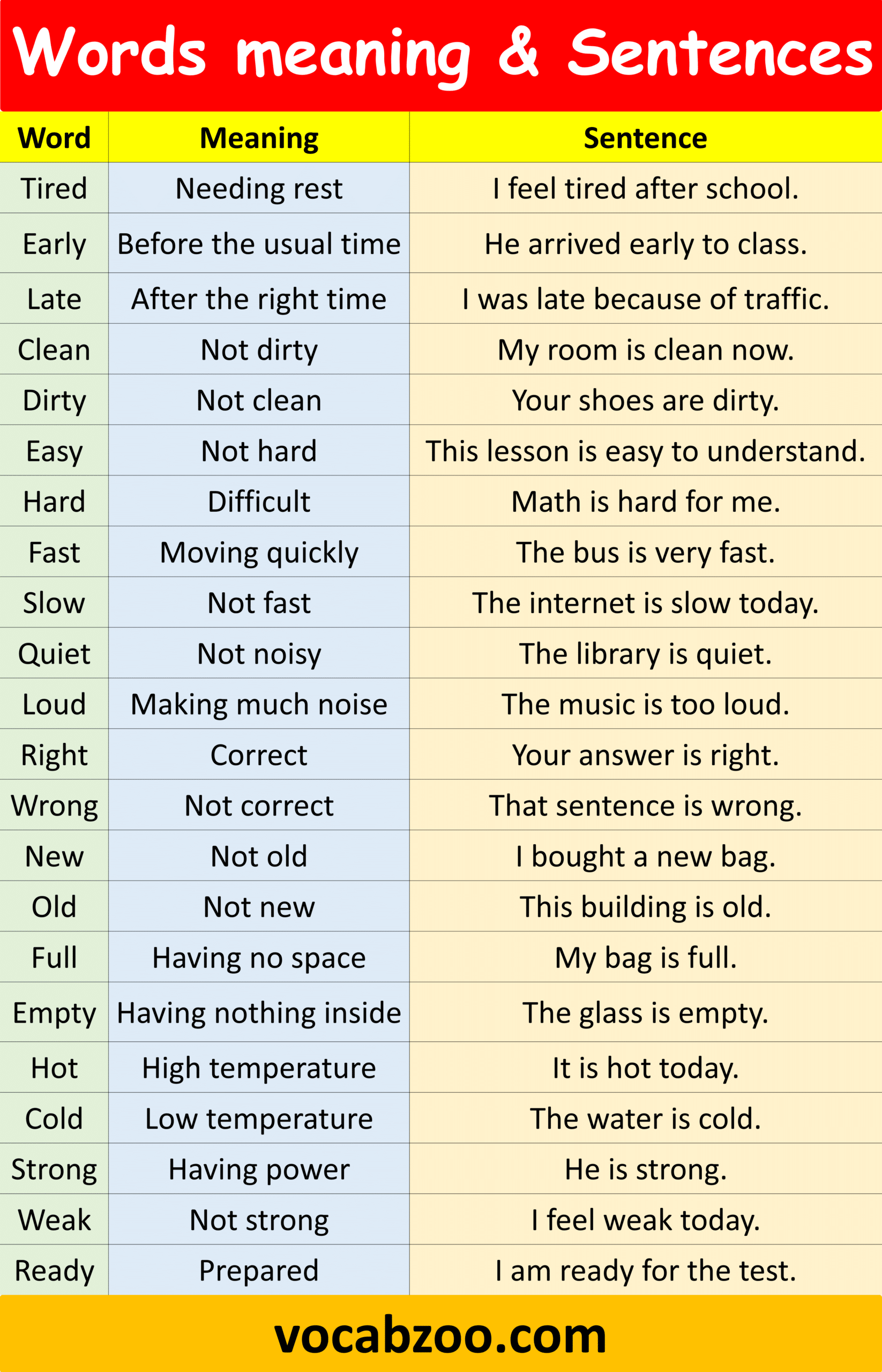 Vocabulary Words With Meaning and Sentence