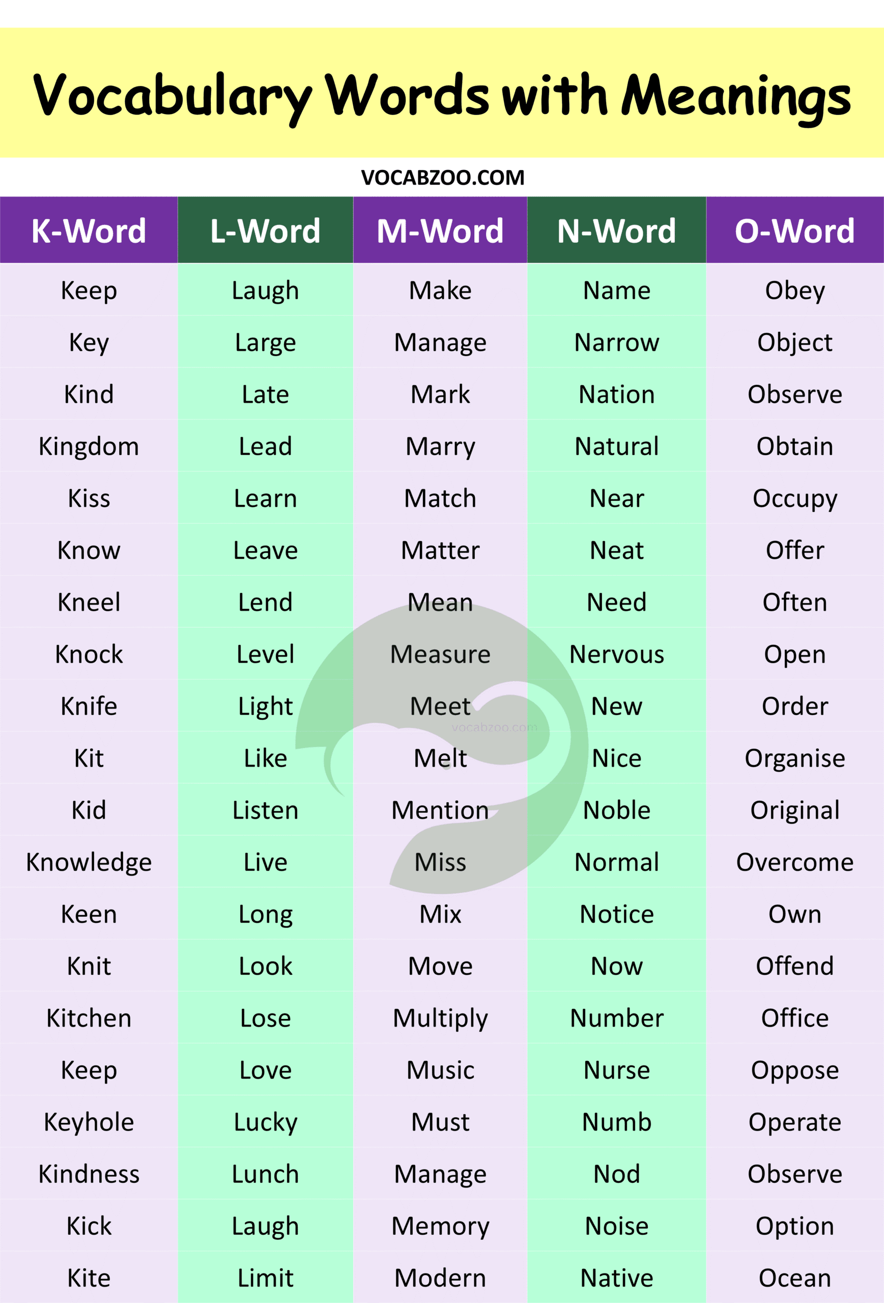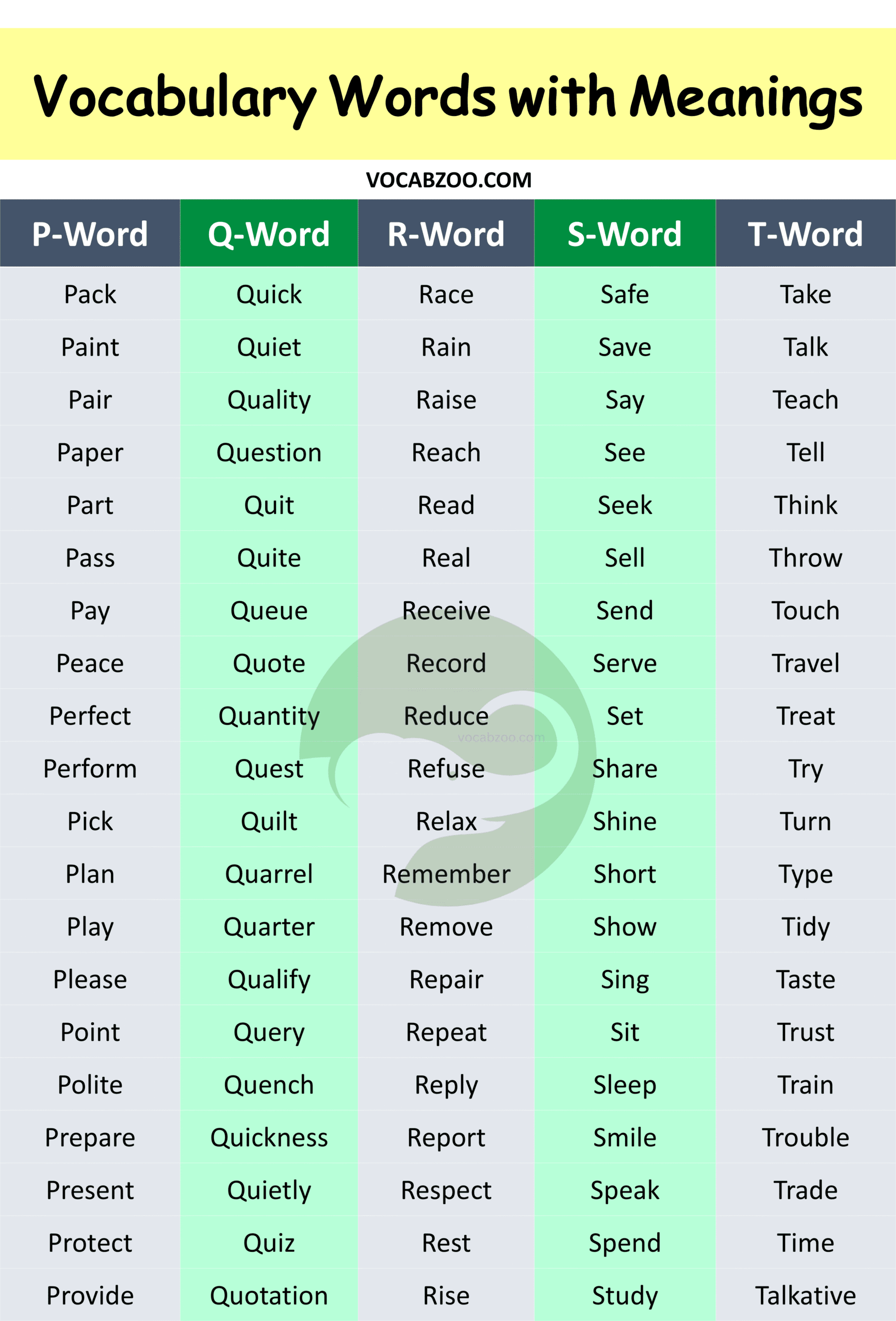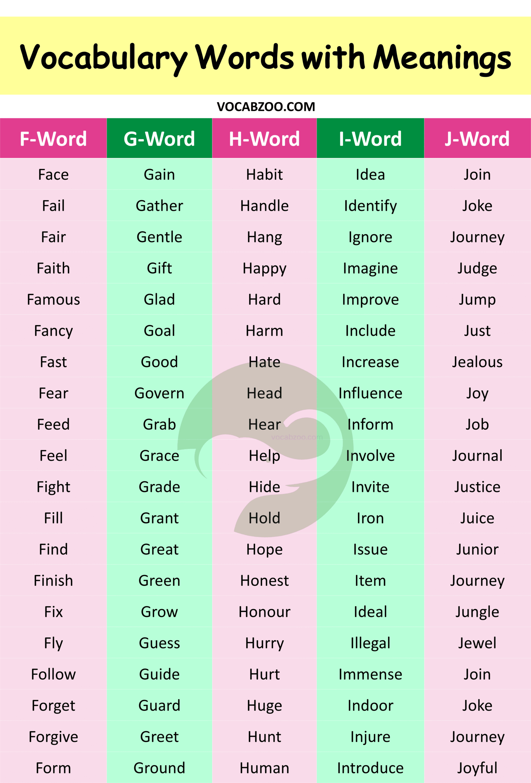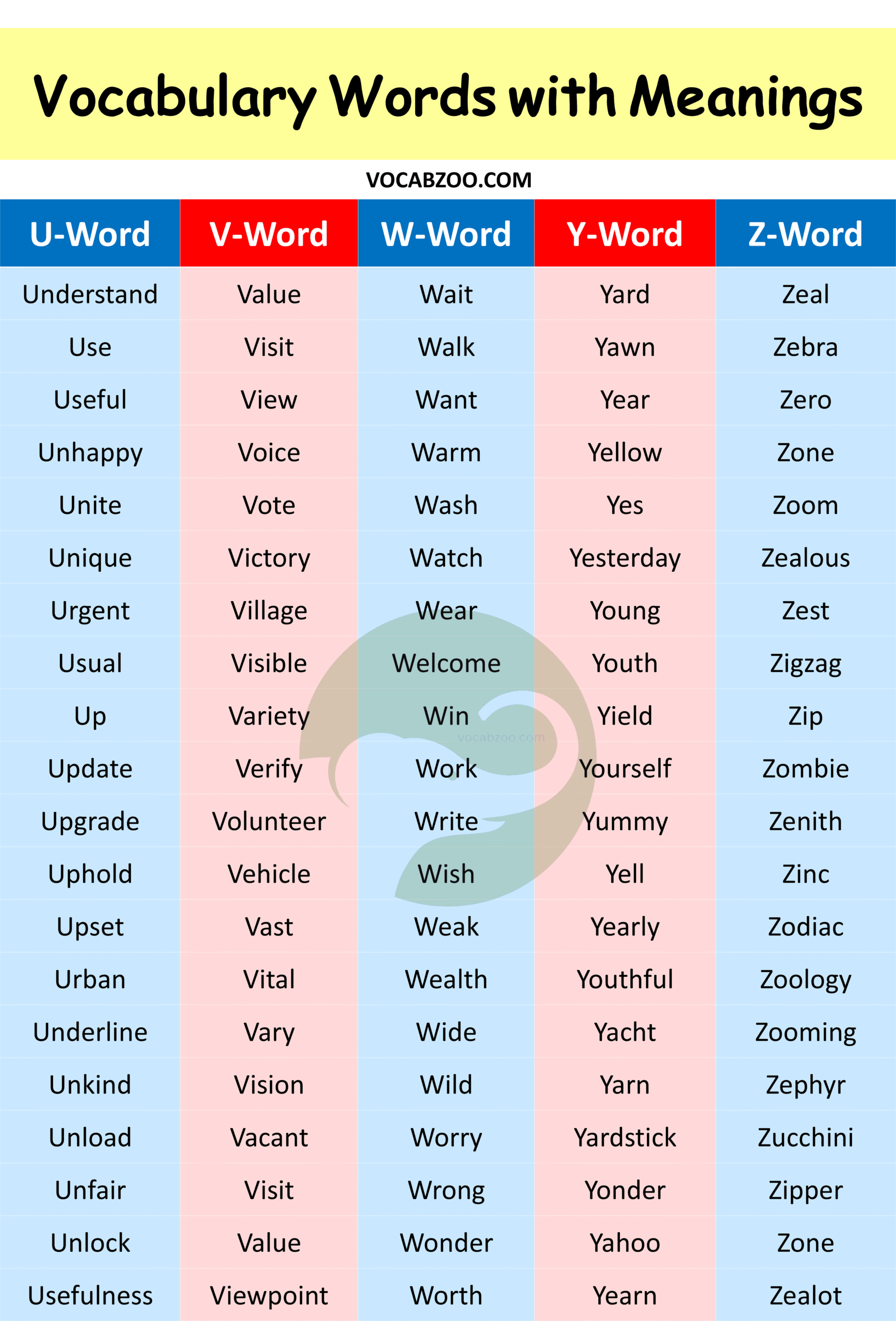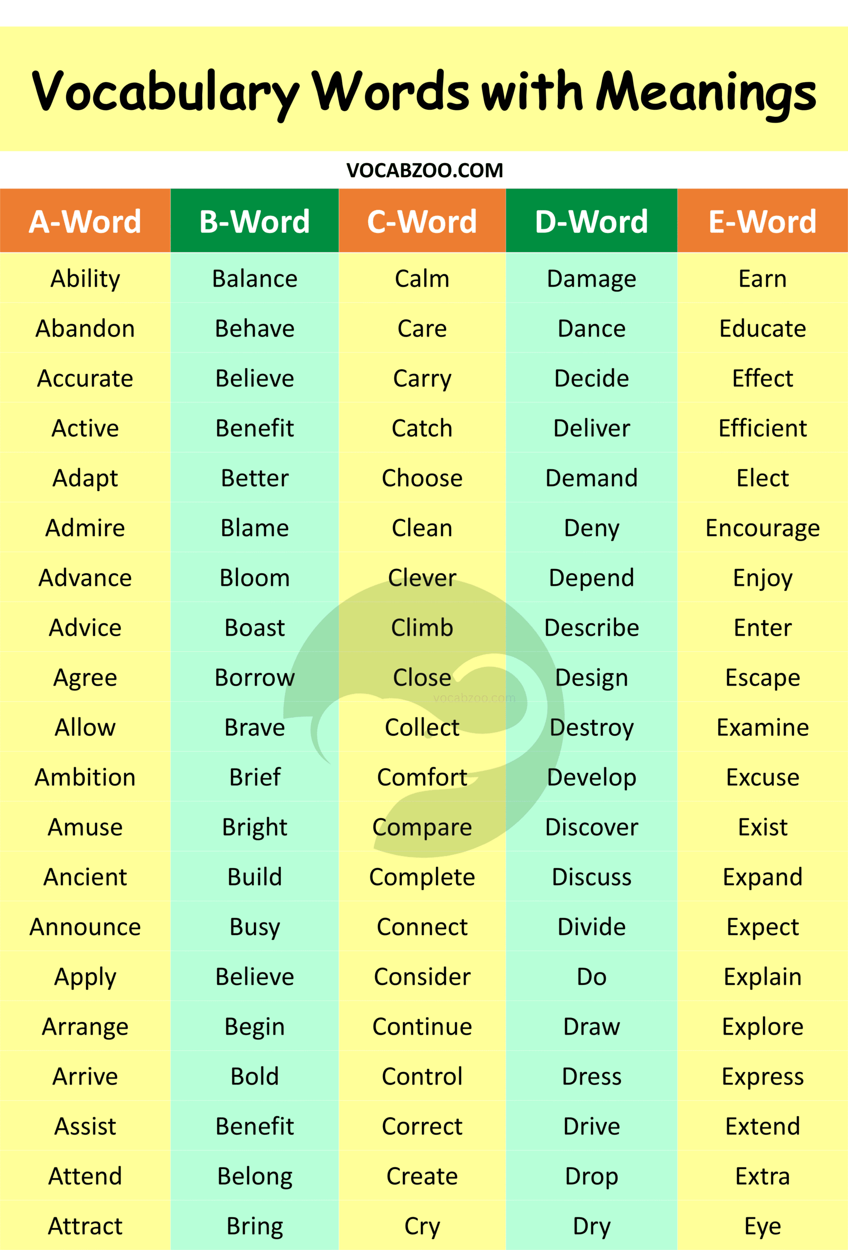 Get a Free PDF book of these 500+ A to Z Vocabulary Words: