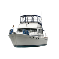A comfortable motorboat designed for longer journeys with cabins and seating areas for passengers.