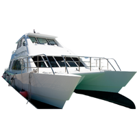 A sailing boat with three hulls, offering extra stability and high speed on water.