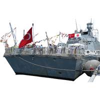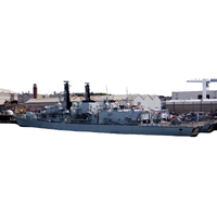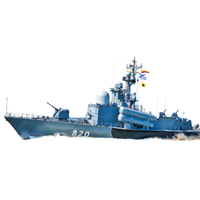 A naval vessel equipped with weapons and defense systems, used by military forces during sea operations.