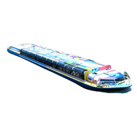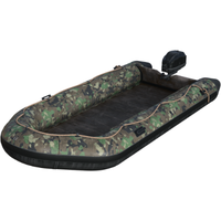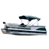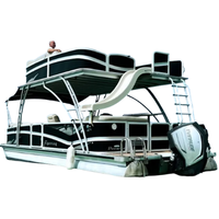 A flat boat supported by floating tubes, commonly used for leisure and family outings.