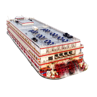 A floating home equipped with living facilities like bedrooms and kitchens. People use it for staying ortraveling slowly on water.