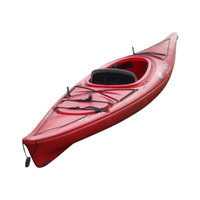 A small, low boat with a covered deck, moved by a double-bladed paddle. It is popular for sport, fishing, and adventure water trips.