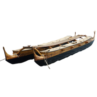 A boat fitted with side supports attached to improve balance and stability in rough waters.
