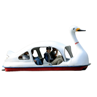 A small recreational boat powered by foot pedals that turn paddles beneath the water surface.