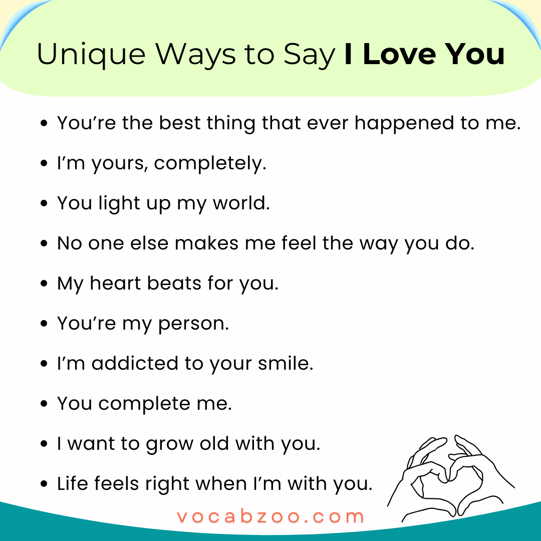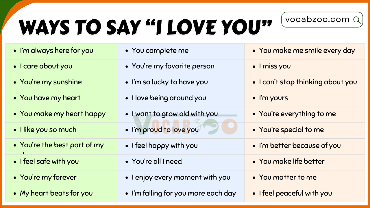 Saying “I love you” is a beautiful way to show your feelings to someone special. But sometimes, using the same words again and again can feel a little boring. That’s why it’s nice to learn new and different ways to say “I love you.” In this lesson, you will learn many unique, romantic, cute, and funny ways to express love in English. These phrases will help you sound more natural, confident, and sweet when talking to someone you care about. So let’s begin!