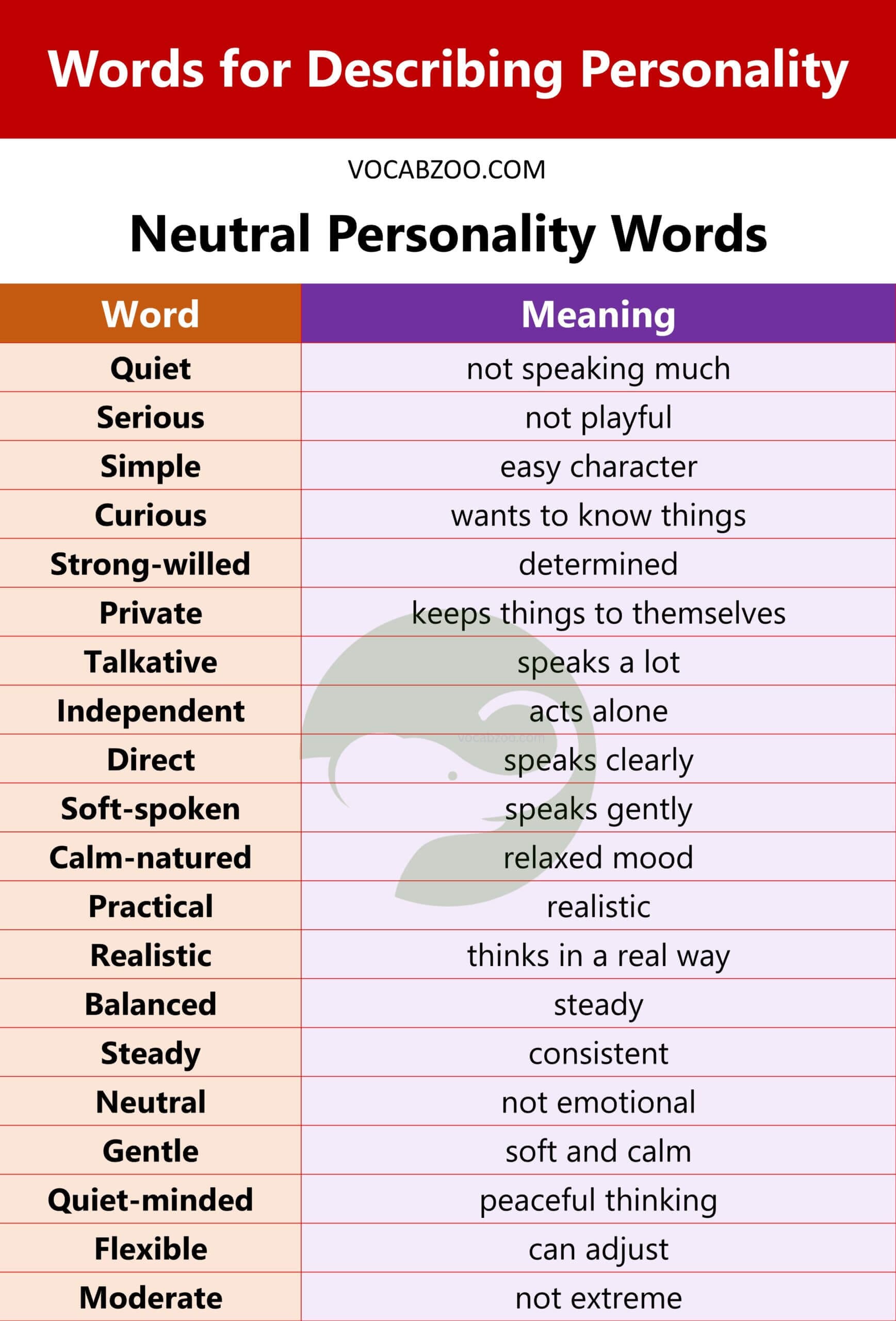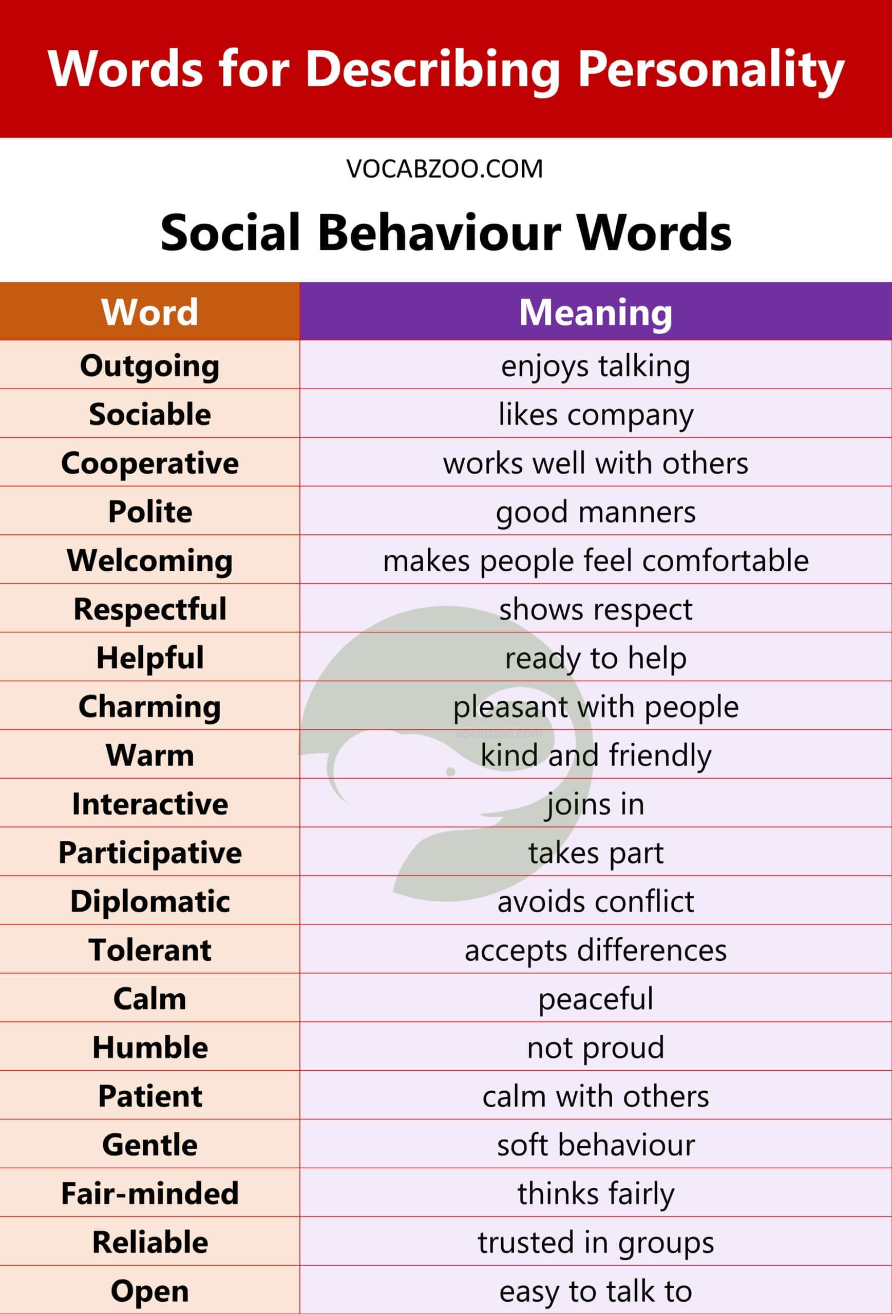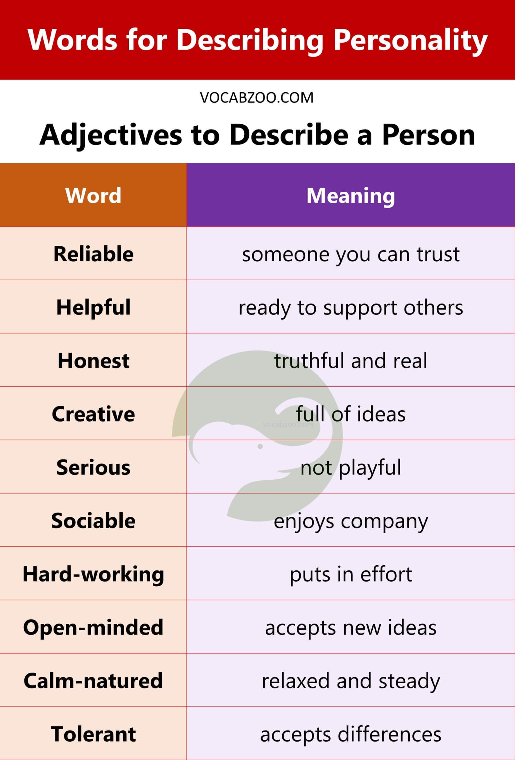 Understanding personality words helps you describe people in a natural and confident way. When you know the right words, it becomes easier to talk about someone’s behaviour, feelings, strengths, and weaknesses.
